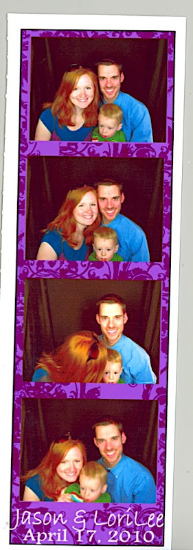 My friend Jason got married last weekend and I took Jared and Asher to the reception. They had this fun photo booth set up. We are lame photo booth posers I'm afraid though. I was trying to get Asher to look up the whole time and forgot to do anything fun. Oh well.